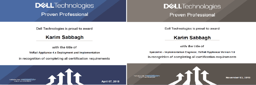 Avant d’entrer dans le vif du sujet, Il est à noter que des formations et certifications pour implémenter VxRail sont disponibles. Et que seules ces certifications garantie l’éligibilité de pouvoir déployer VxRail. Autrement, vous devez faire appel à un partenaire certifié. Vous pouvez vous référer aux logos de la partie droite de votre écran 🙂 Sinon, voici à quoi elles ressembles: